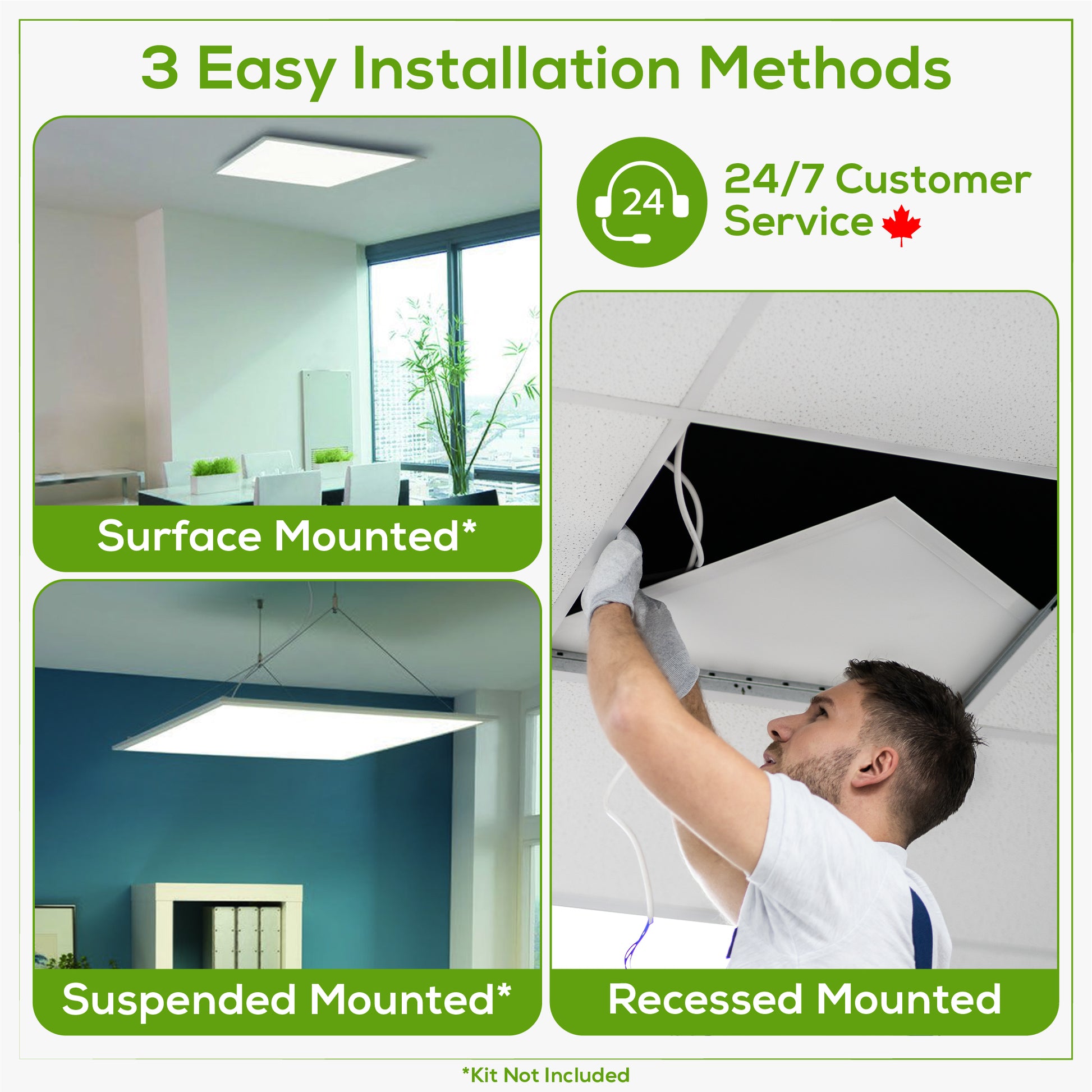 - QUICK AND EASY INSTALLATION: Drop ceiling panel light is designed with mounting clips and safety cable holes in each clip for easy and safe installation. Can be installed in standard grid ceilings.
