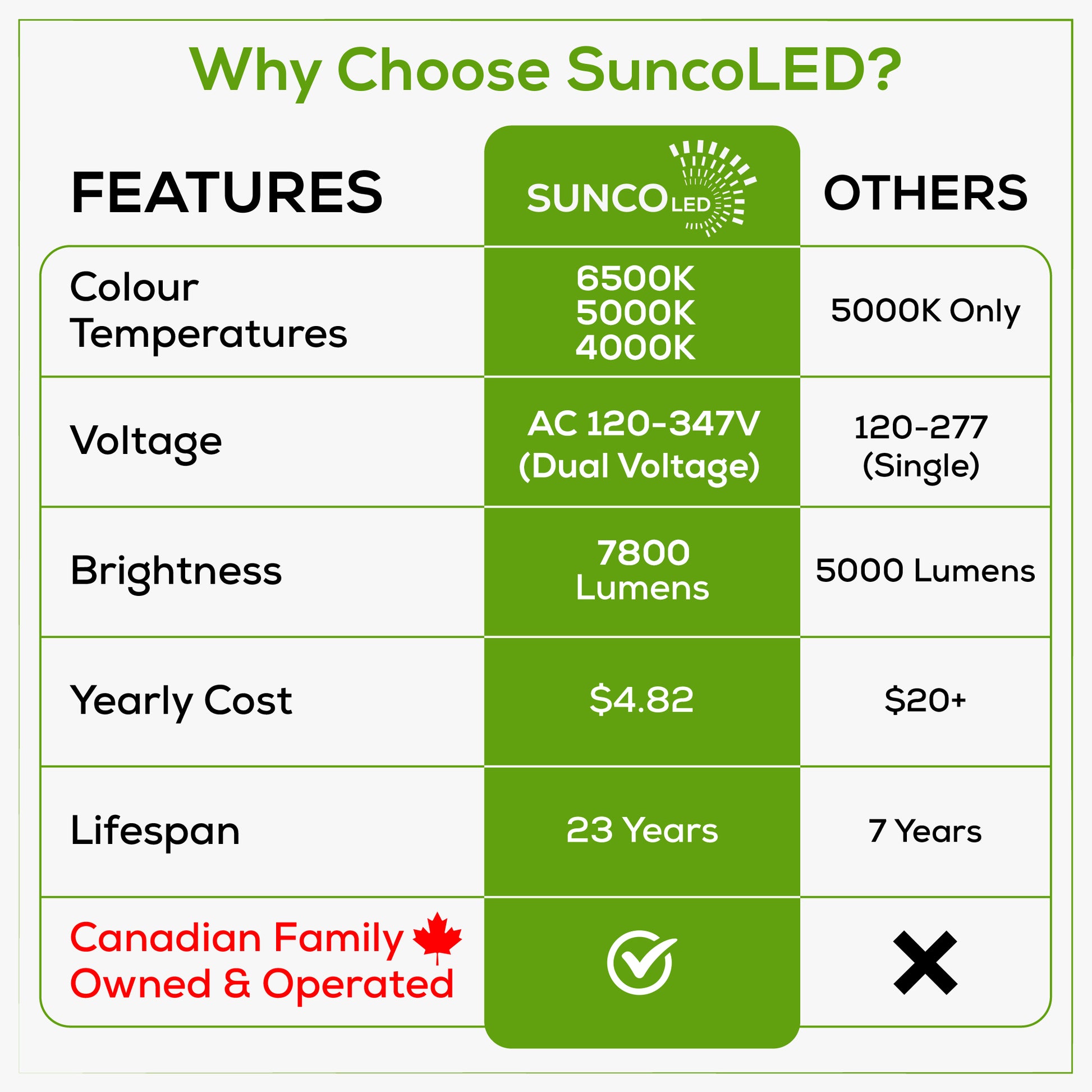 - 24 Hour Customer Service: Customer service and offering top quality products are our first and foremost priorities at SuncoLED. We guarantee that you are gonna love our product. We cover most damage and defects in the product. 24 hour customer service is here to help against any issues. We are UL and cUL Certified